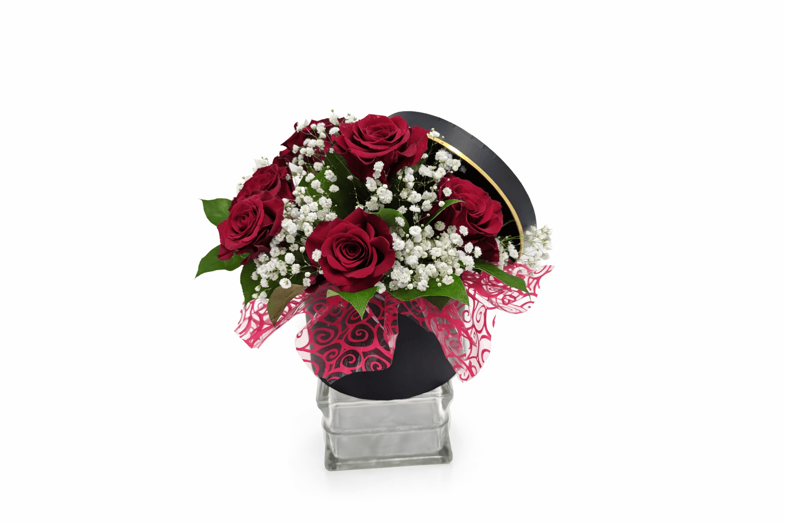 Surprise and delight with The Gift Box, a charming floral presentation that combines beautiful roses with the excitement of unwrapping a gift. Fresh roses with seasonal filler flowers are arranged in a themed decorative box that doubles as a keepsake. Available in small, medium, and large sizes with 3, 6, or 12 premium roses. The elegant presentation makes this perfect for birthdays, celebrations, or any time you want to create a memorable unboxing experience. Each box is thoughtfully designed to match your occasion.