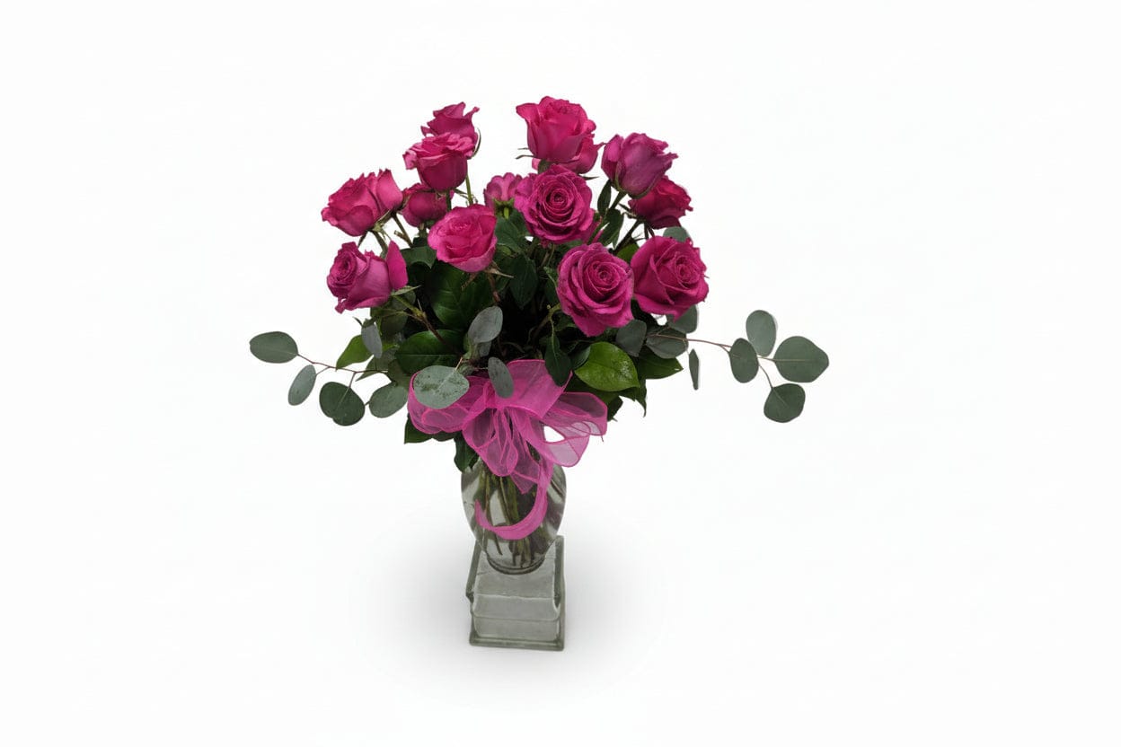 For your one true love, The Soul Mate delivers sophisticated romance with striking visual impact. This luxurious arrangement features stunning short-stemmed red roses rising above a lush base of deep red carnations, creating beautiful depth and dimension. The all-red color story in a sleek black ceramic cylinder makes a powerful, modern statement. Available in three sizes with 18, 24, or 36 premium roses. The contemporary black container creates dramatic contrast that makes the red blooms absolutely captivate. Perfect for anniversaries, proposals, or declaring eternal love.